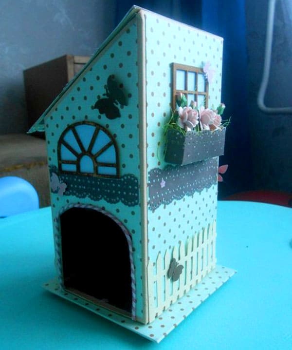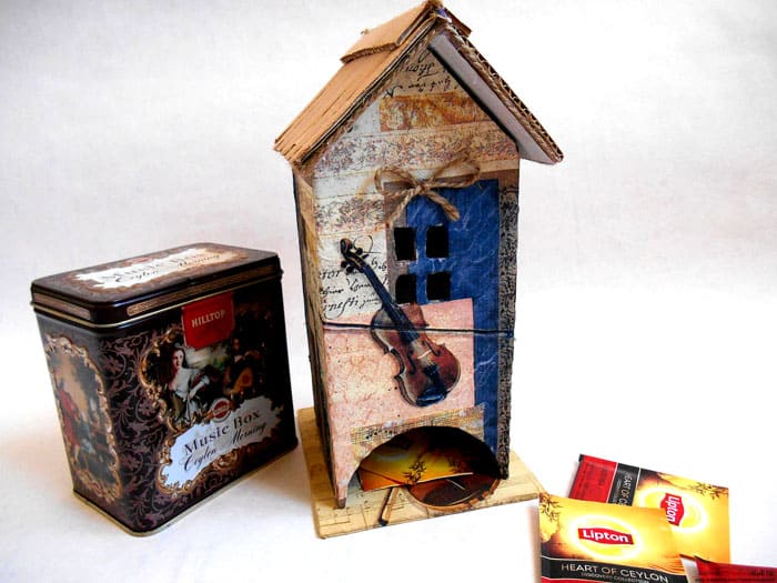 Кутията с формата на къща за пакетчета за чай изглежда направо сама. Красотата е, че можете да изберете стила и декора на занаята директно за дизайна на кухнята.