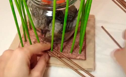 В допълнение към планина от тръби, ще ви е необходима плътна основа с отвори, направени в нея по периметъра за поставяне на тръбите. Основата веднага се прави красива, тъй като вече не е необходимо да се сменя.