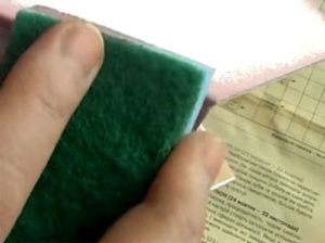 Водата се пръска върху чертежа от спрей бутилка, излишната влага се източва. Обърнете чертежа и внимателно го поставете на подготвеното място.