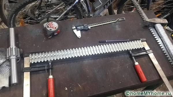 - след като сте регулирали дължината на работното пространство, фиксирайте ножовете с метални шайби и гайки.