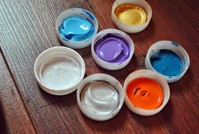 Понякога гвашът остава в капаците, можете също да смесите цветове в тях - сместа няма да изсъхне и можете да я използвате отново