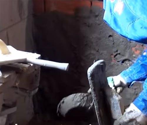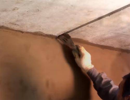 Преди да измажете основата на къща със собствените си ръце, трябва напълно да почистите всички повърхности от мръсотия, прах и мазни отлагания. Ако бетонната основа е на повече от година, можете да приложите разрези за по-добро сцепление на хоросана. На тухлена основа трябва да почистите всички фуги от стария хоросан със шпатула.