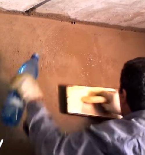 Преди да нанесете мазилка по стените със собствените си ръце без маяци, след като грундът изсъхне, навлажнете добре всички основи с вода.