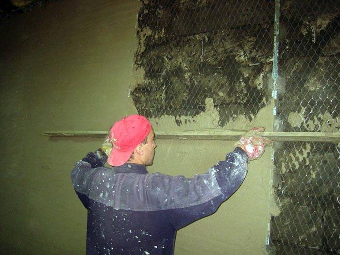 Ако отклоненията върху основата са достатъчно големи, мазилката трябва да се извърши с допълнителна инсталация на маяци. След предварителна подготовка и обработка на повърхността с грунд започва тяхното инсталиране. Ако работата се извършва в помещения с висока влажност или с големи дефекти в основите, мрежата трябва да бъде фиксирана за допълнителна армировка преди изравняване на стените по маяците със собствените си ръце. Видео уроците ще ви помогнат да свършите работата правилно. Фиксира се със смес или дюбели.