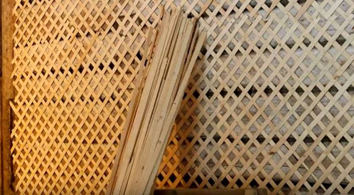 При монтиране на дървена решетка или херпес зостер се използват тънки летви с размери от 3 × 15 до 5 × 20 мм. Когато купувате, е важно да обърнете внимание на качеството на дървото, то трябва да има светъл цвят. При закрепването пироните не се забиват изцяло, а до средата, за да може капачката да се огъне и допълнително да притисне релсата.