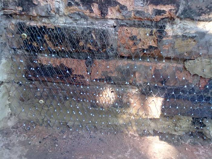 На втория етап всички повърхности се грундират обилно, след което дълбоките дефекти се изравняват с циментова замазка. Същата смес трябва да се използва за запълване на предварително почистени фуги в тухлена зидария.