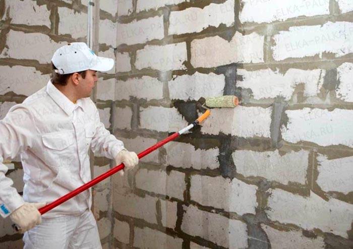 След това грундирайте добре всички основи с четка или валяк. Необходимо е да се избере грунд за дълбоко проникване, не е необходимо да се спестява композицията на този етап, това ще помогне за добро сцепление на шпакловката към повърхностите. Освен това ще предпази стените от излишната влага и ще предотврати увреждане на мухъл и плесен, които могат да корозират материала.