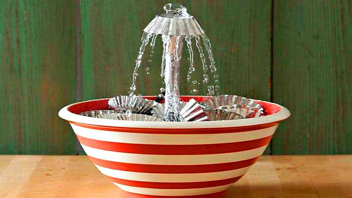 Аквариумът може да бъде заменен с малък фонтан.В допълнение към овлажняващата функция, подобен атрибут ще изпълнява и декоративен. Фонтаните се предлагат в различни конфигурации и дизайн. Вътре в устройството е мотор, който циркулира водата.