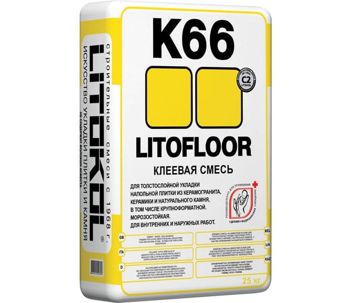 Пример: Lito Floor K66, Ceresit CM 14, Quick-Mix RKS.
