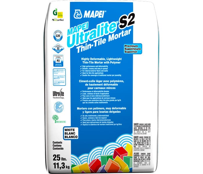 При облицоване на конструктивни елементи в басейни, парни бани, душове, както и при полагане на големи плочки, се препоръчва да се използват лепила с маркировка S2.