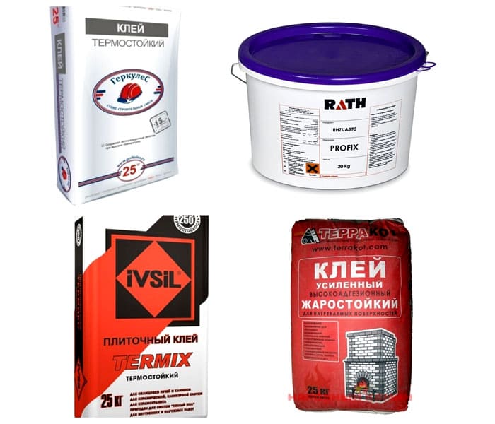 Топлоустойчиво или огнеупорно лепило за плочки е направено на основата на портландцимент, кварцов пясък и шамотна глина. За да се увеличи адхезията, еластичността и водоустойчивостта, към него се добавят полимерни модификатори. Трябва да бъдете особено внимателни в процеса на използването му, тъй като много марки термоустойчиво лепило имат специална технология за нанасяне. Например, "Ivsil Termix" съдържа високо съдържание на силикати, а като лепило се използва специален алуминатен цимент.Характеристика на приложението му е нанасянето на лепилна смес върху повърхността на основата 10-15 минути преди началото на облицовъчната работа. За повечето други формулировки такава пауза в отвореното време на употреба е критична, след което формулата, приложена върху повърхността, става неподходяща за по-нататъшна употреба.