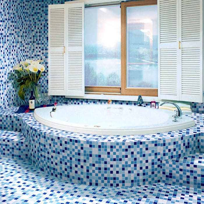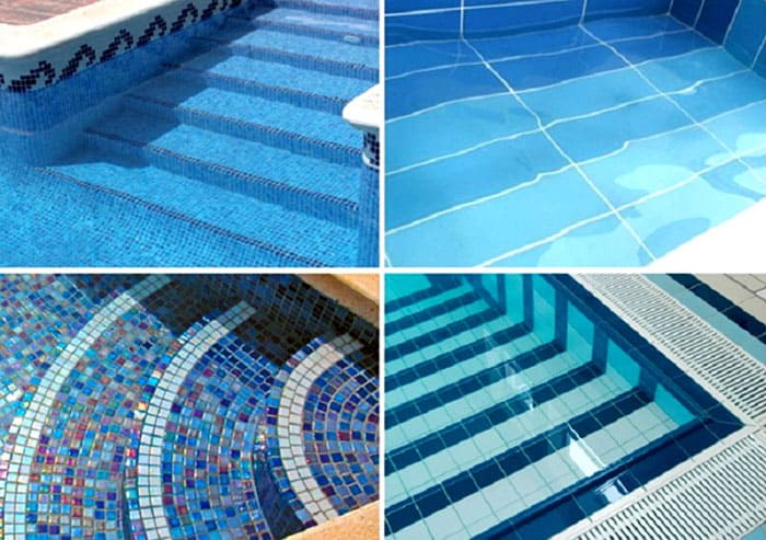В повечето случаи влагоотблъскващото лепило за плочки, използвано в басейните, е бяло, тъй като мозайките често се използват като облицовка