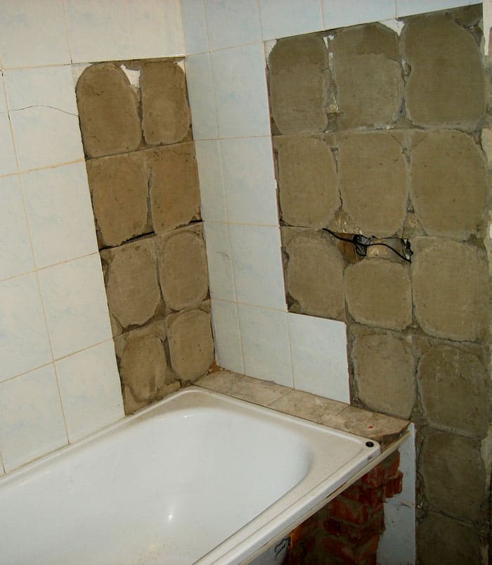Полагането на керамични плочки на стена без носеща лента е възможно само със съединения с висока тиксотропия