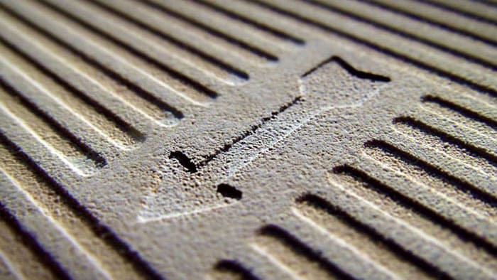 - Подготовка на основата. Ако разликата в повърхността на основата не надвишава 3-5 мм, се допуска тънкослойно полагане с използване на назъбени мистрия. Размерът на зъба и съответно консумацията на лепило, също пряко зависи от размерите на плочката. Колкото по-голяма е плочката, толкова по-голям трябва да бъде зъбът.