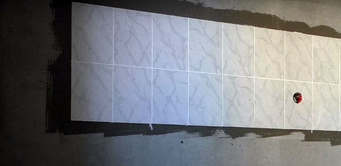 - Разпространение. Важен параметър за полагане на плочки върху хоризонтални повърхности. Благодарение на тази характеристика, лепилната смес запълва всички пукнатини и кухини, осигурявайки голяма площ на сцепление. За вертикалните повърхности, напротив, високото разпръскване е отрицателен фактор.