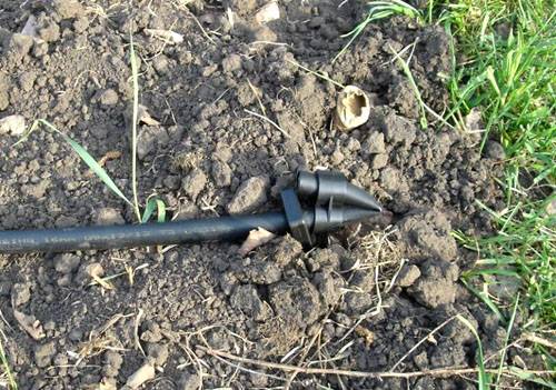 По-добре е да използвате полиетиленови тръби като основна тръба. Необходимо е да се определи какъв диаметър е необходим за такива линии. Например, HDPE тръба трябва да има диаметър 32 mm. По-малък диаметър не е подходящ, тъй като в тръбите е пробит отвор от 16 мм за стартови съединители. Използва се за пробиване отвертка... Как да направите такава структура със собствените си ръце зависи от материалите.