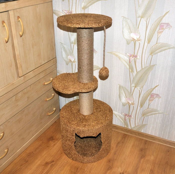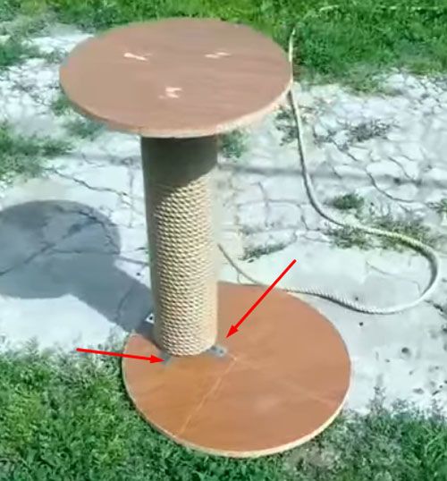 Играчката ще разсее домашния любимец от дългото пътуване. Такъв модел се прави по същия начин като с колона, но без шезлонг. Може да се основава на всичко. Ако има пътен стълб, това ще бъде отлична основа.