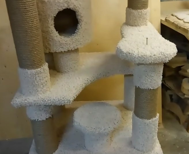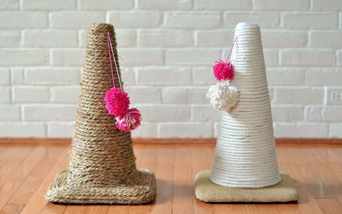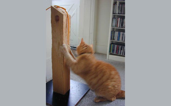 Котката ще прояви повече внимание към занаята, ако трупът е украсен с юта или дебело въже. Но дори и под тази форма котката ще се захване с бизнеса