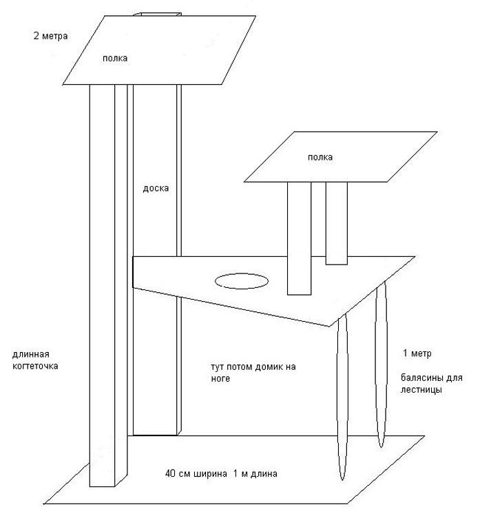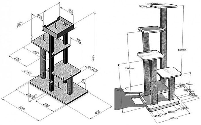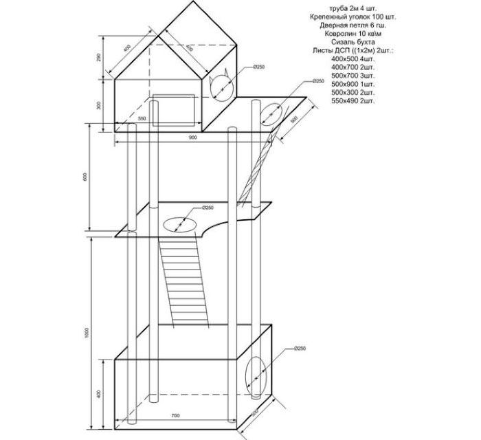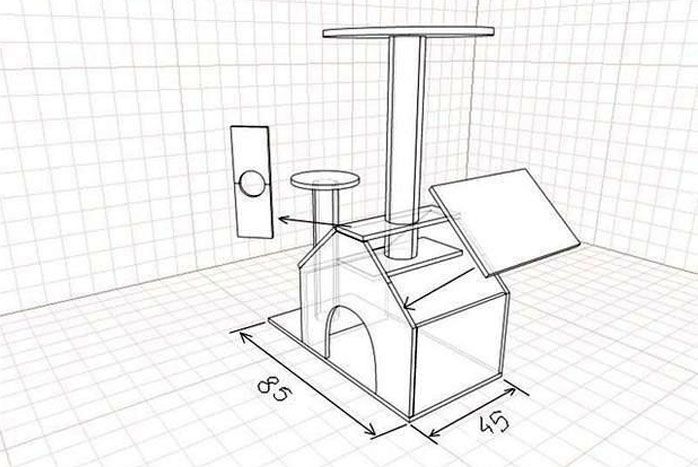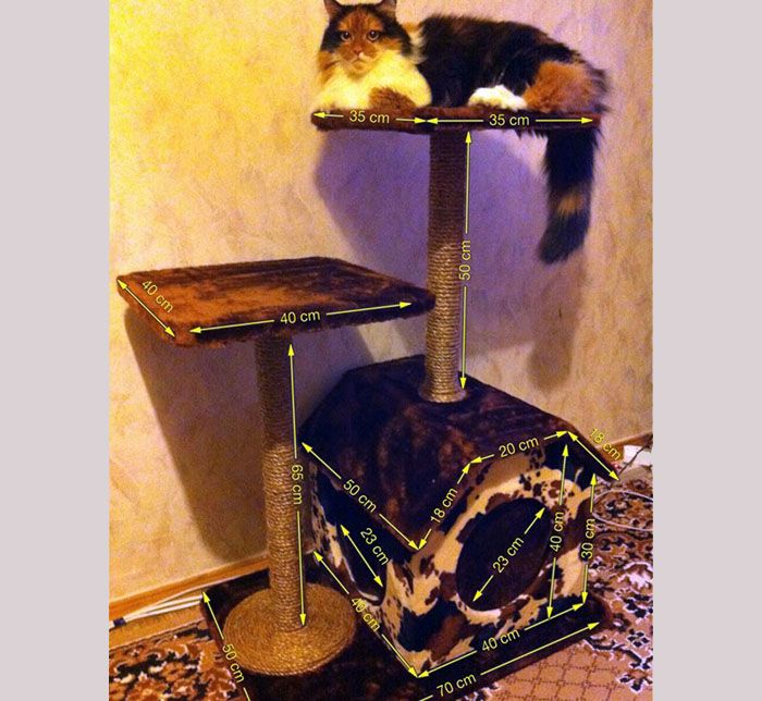 Схеми и размери за изработване на стълбове за надраскване на котки, направени сами
