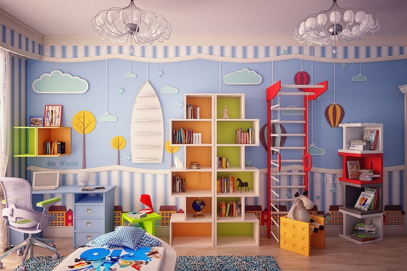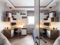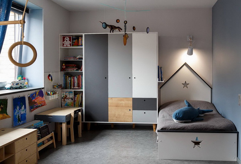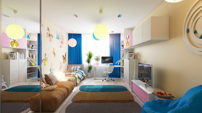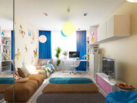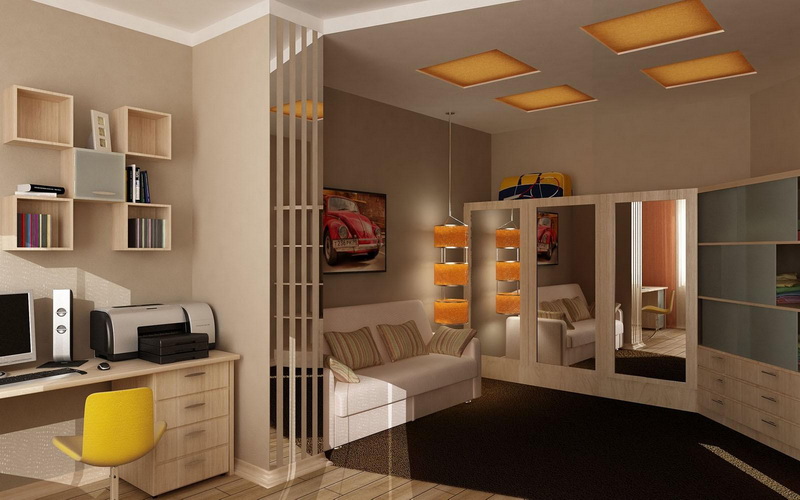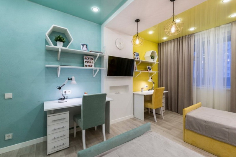 Можете да разделите стаята на 3 части: зона за спане, зона за игра, работна зона. Те трябва да бъдат визуално отделени един от друг. Те трябва да се разглеждат отделно.