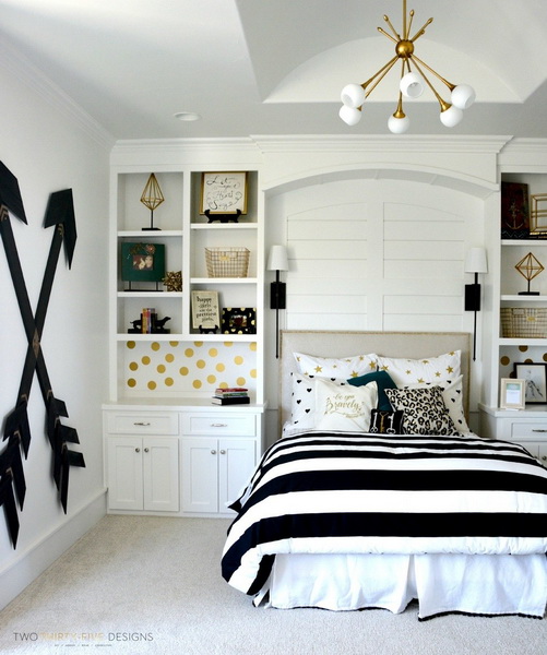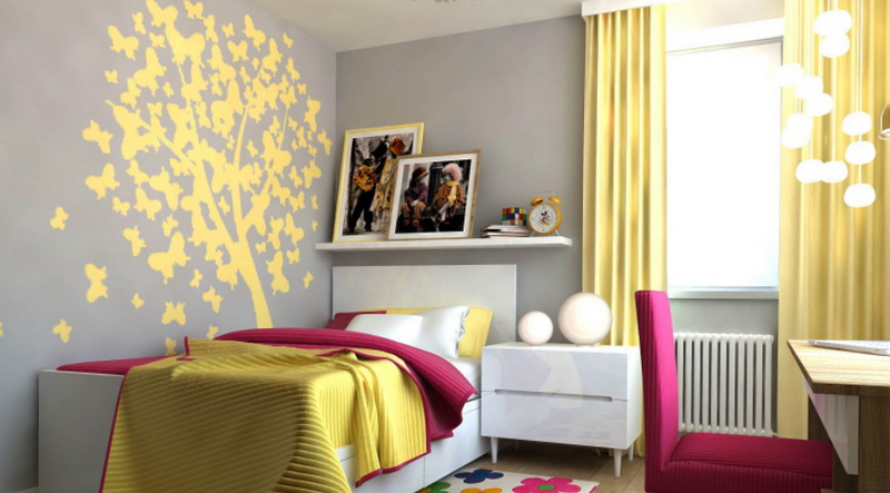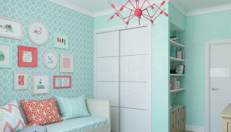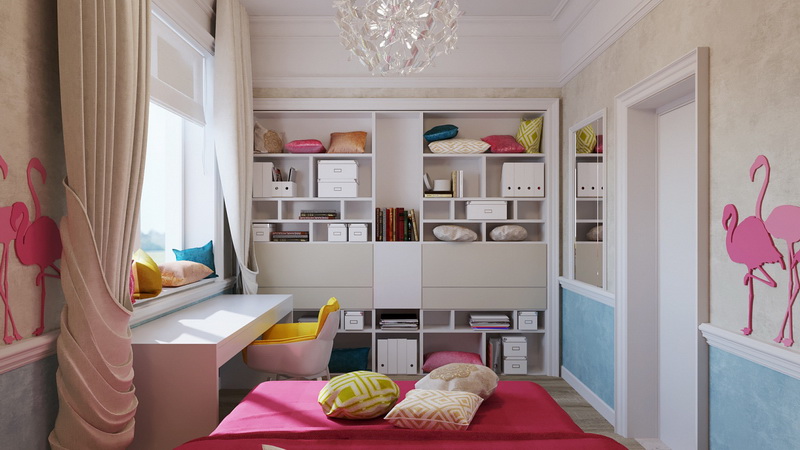 Момичетата много обичат да украсяват стаята. Например, рисунка в детска стая, която детето ще направи, би била подходяща. Добавете още рафтове за съхранение на фигурки, снимки и оборудване.