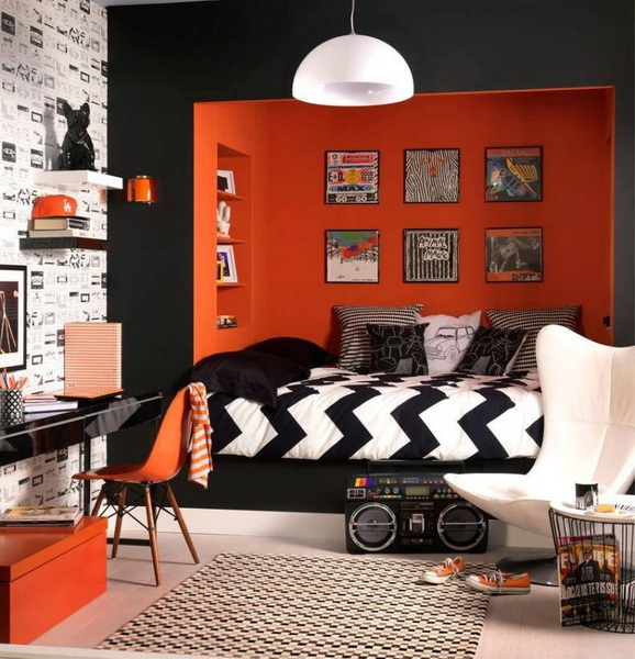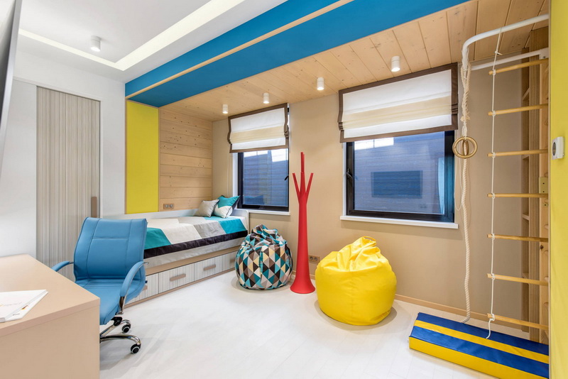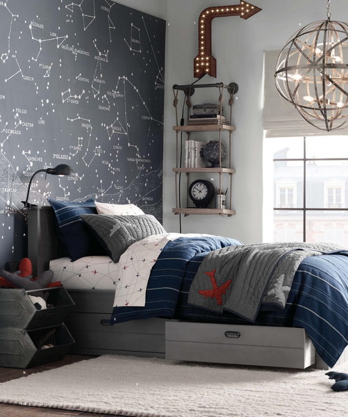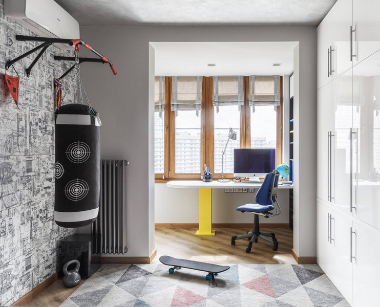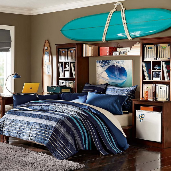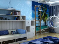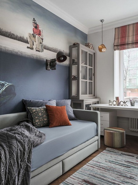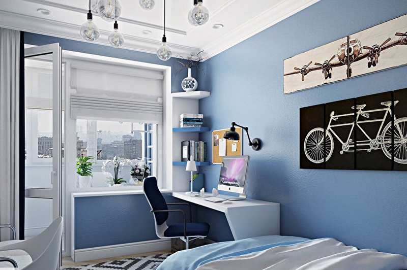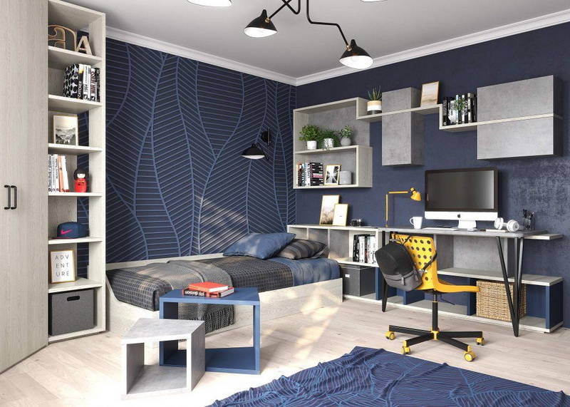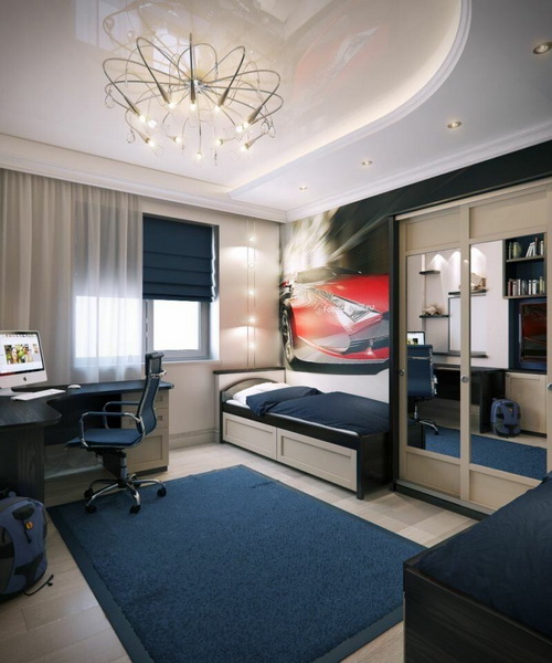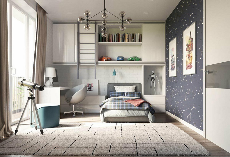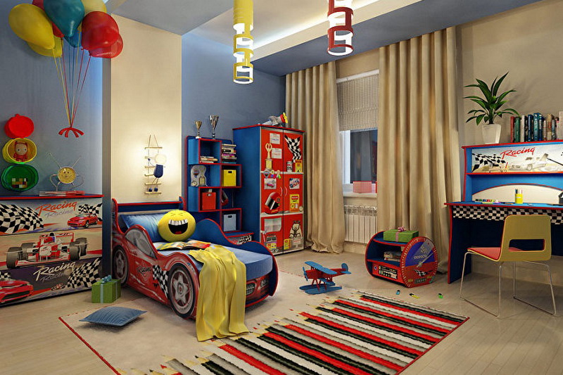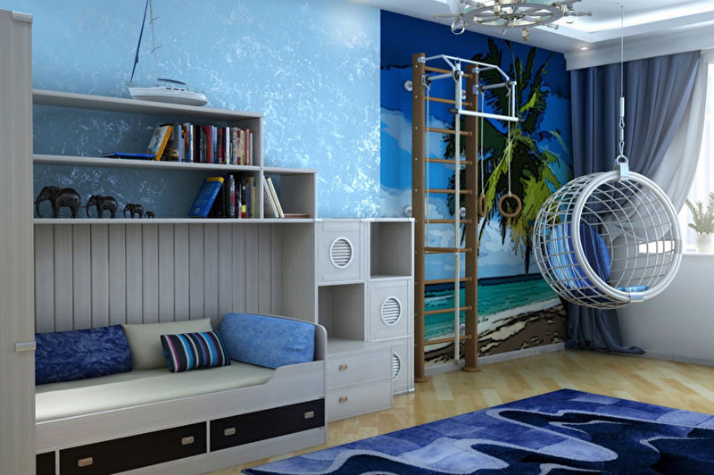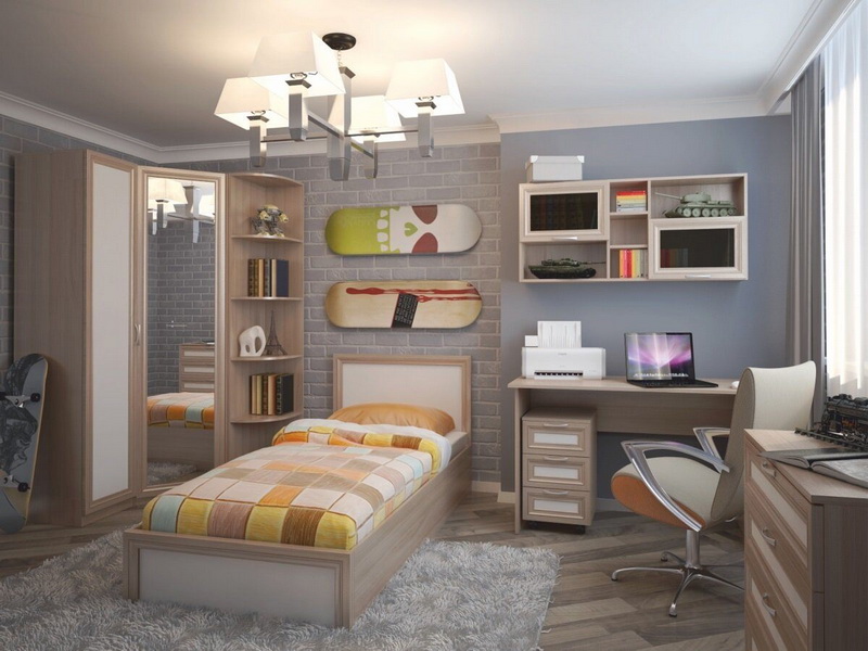 Момчетата са много по-взискателни към пространството, но по-сдържани в яркостта.Обикновено бяло, бежово или сиво покритие на стаята. Мебелите са прости, но е по-добре, ако са многофункционални. Заема по-малко място, но изпълнява функциите си не по-зле.