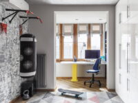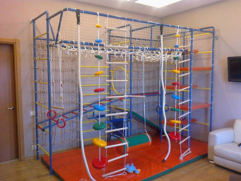 Незадължителен, но желан елемент. В магазините можете да си купите готово спортно оборудване за дома. Например тук е подходяща стена, баскетболен кош, малка врата, стена за катерене, както е на снимката.
