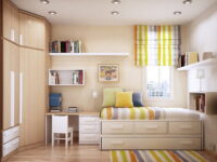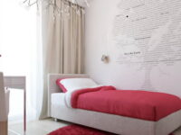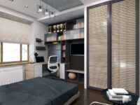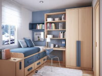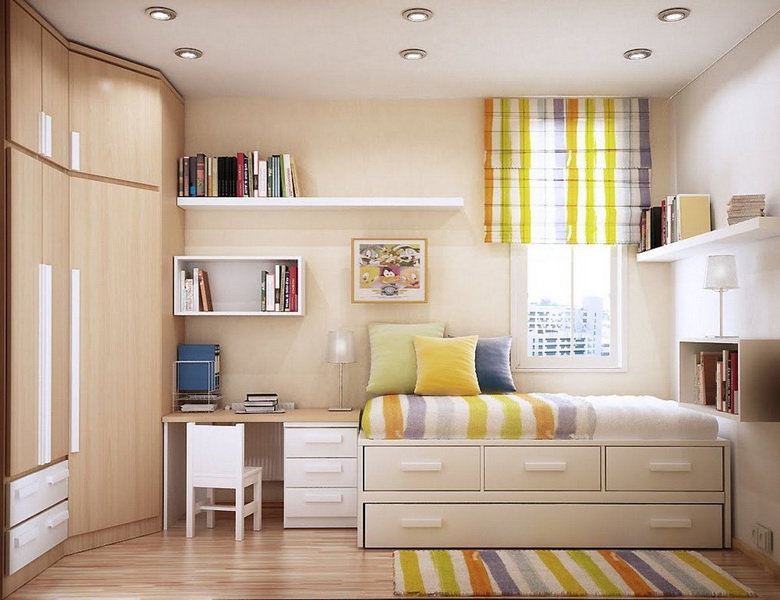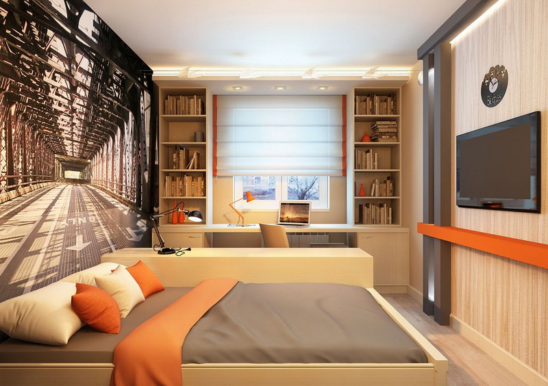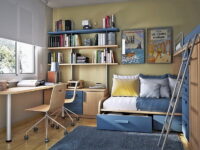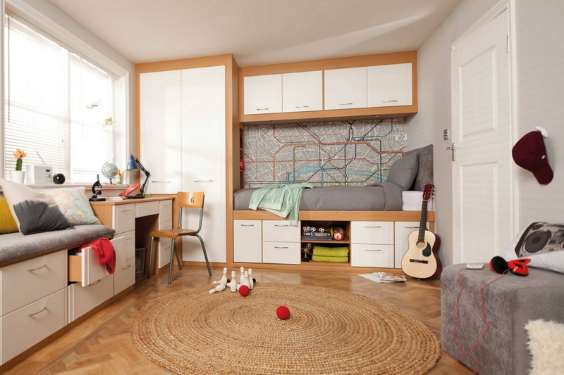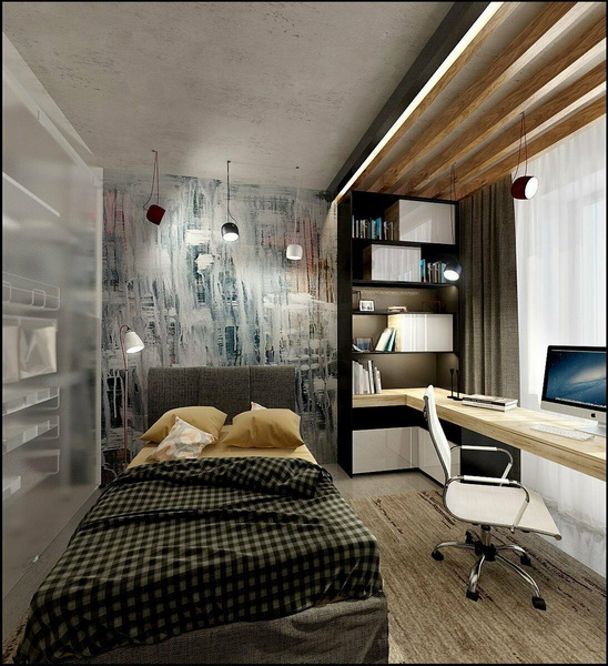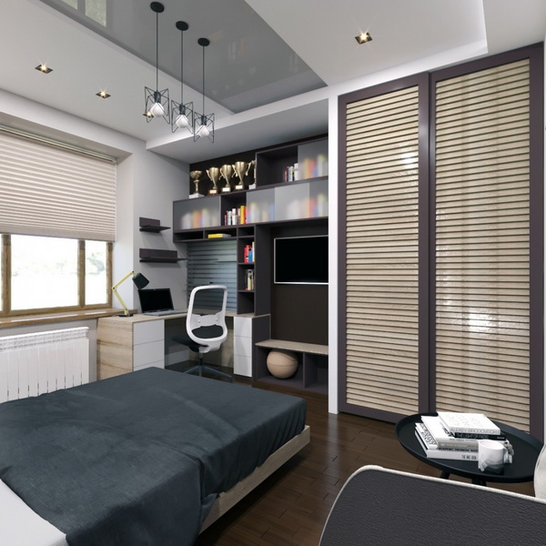 Интериорът на стая за ученик задължително изисква обмислено място за спане. Тъй като много деца лягат късно и се събуждат рано, през нощта нищо не бива да ги безпокои. Следователно леглото трябва да бъде поставено възможно най-далеч от прозореца.