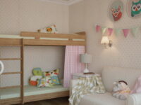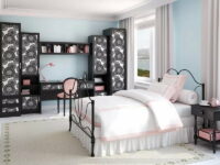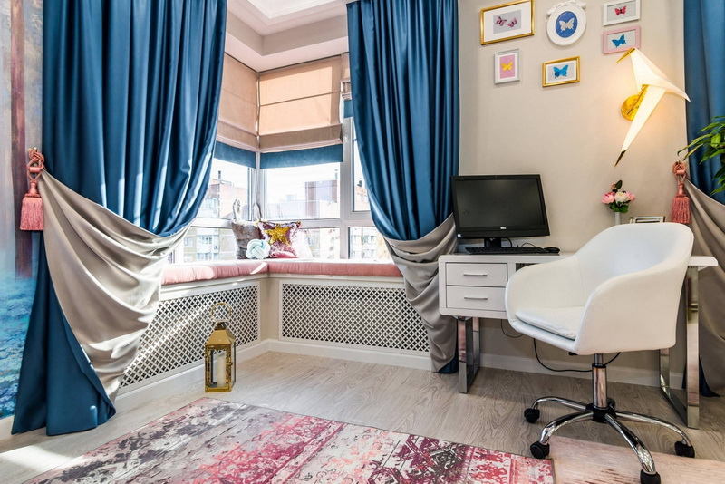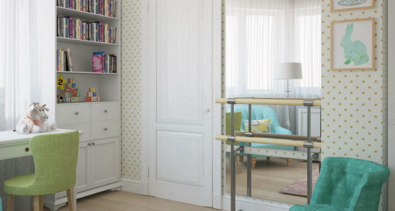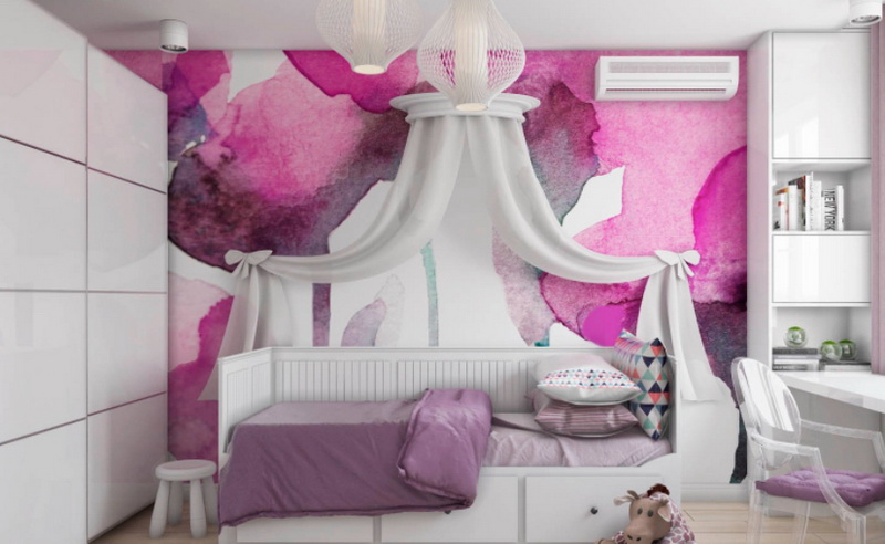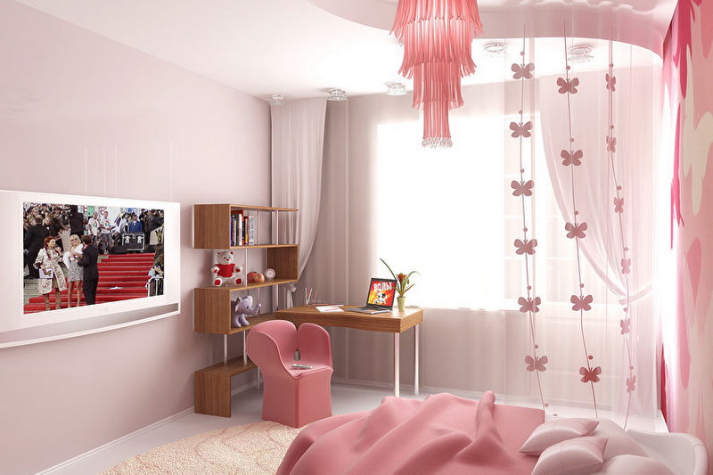 По възможност е по-добре да го отделите с голям шкаф. Така още по-малко светлина ще проникне в стаята. Интериорът на детската стая за момиче може да бъде разнообразен с малък екран около леглото. По този начин можете да забравите за ярката светлина призори, която ще попречи на детето.