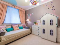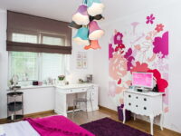 Детска стая за момиче може да включва маса за пинг-понг, баскетболна кошница.