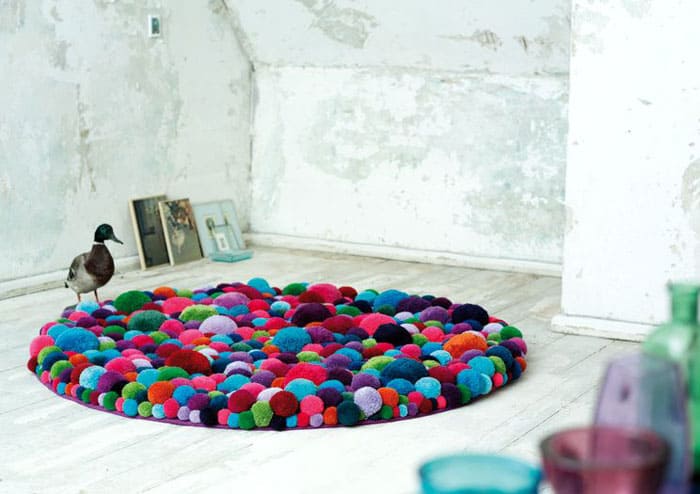 Сладък кръгъл килим от помпони - по-лек от светлината!