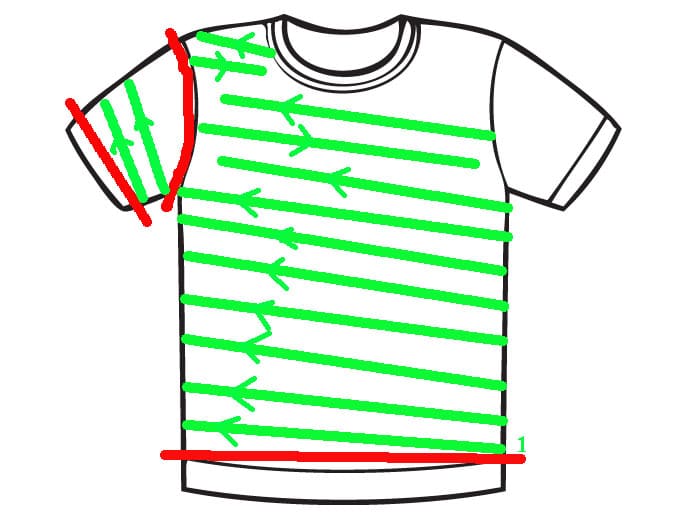 - трикото се нарязва на дълги тънки ивици, които се разтягат в процеса;