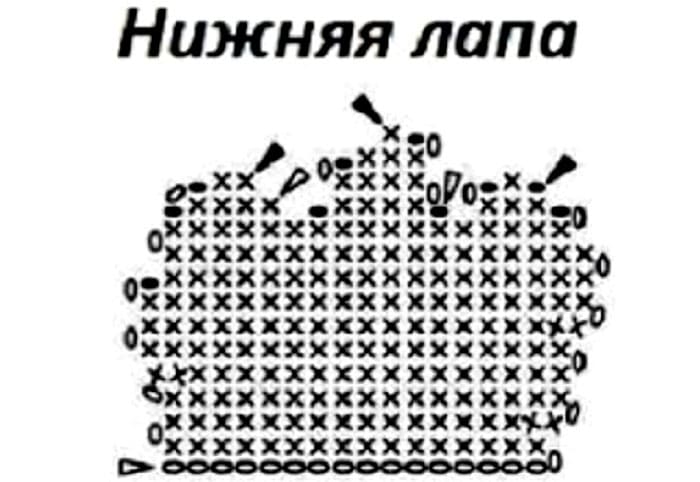 - ние плетаме краката с игли за плетене от 15 бримки и повърхност на шал 15 см;