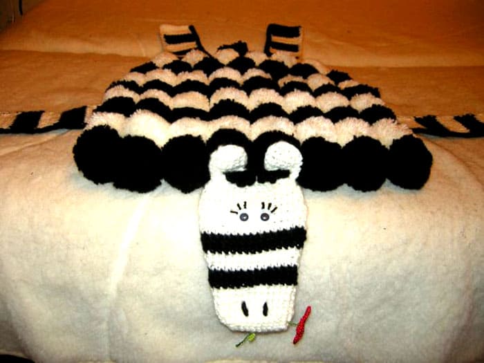 - оставете последния помпон на опашката и го зашийте в средата на една от страните;
