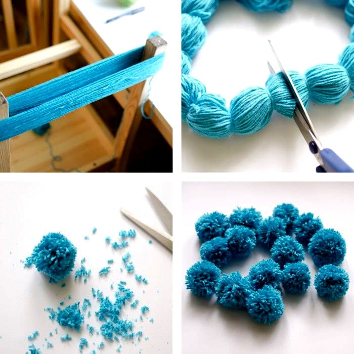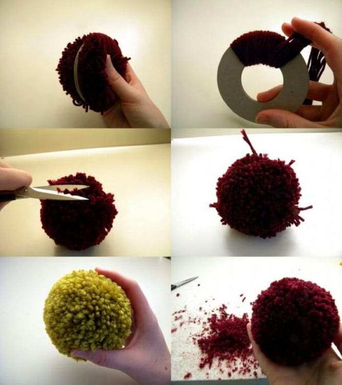 - най-търпеливите са поканени да навият конеца върху кръгла широка шарка или вилица.Помпомите са много буйни и с малки размери;