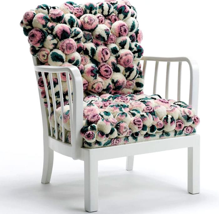 Третият вариант ни дава много топки от един и същи цвят наведнъж. Обръщаме стола с главата надолу, обвиваме двата най-близки крака с прежда. Сега, на еднакво разстояние, затягаме преждата с нишки и я отрязваме. Една нишка в средата прави един помпон.