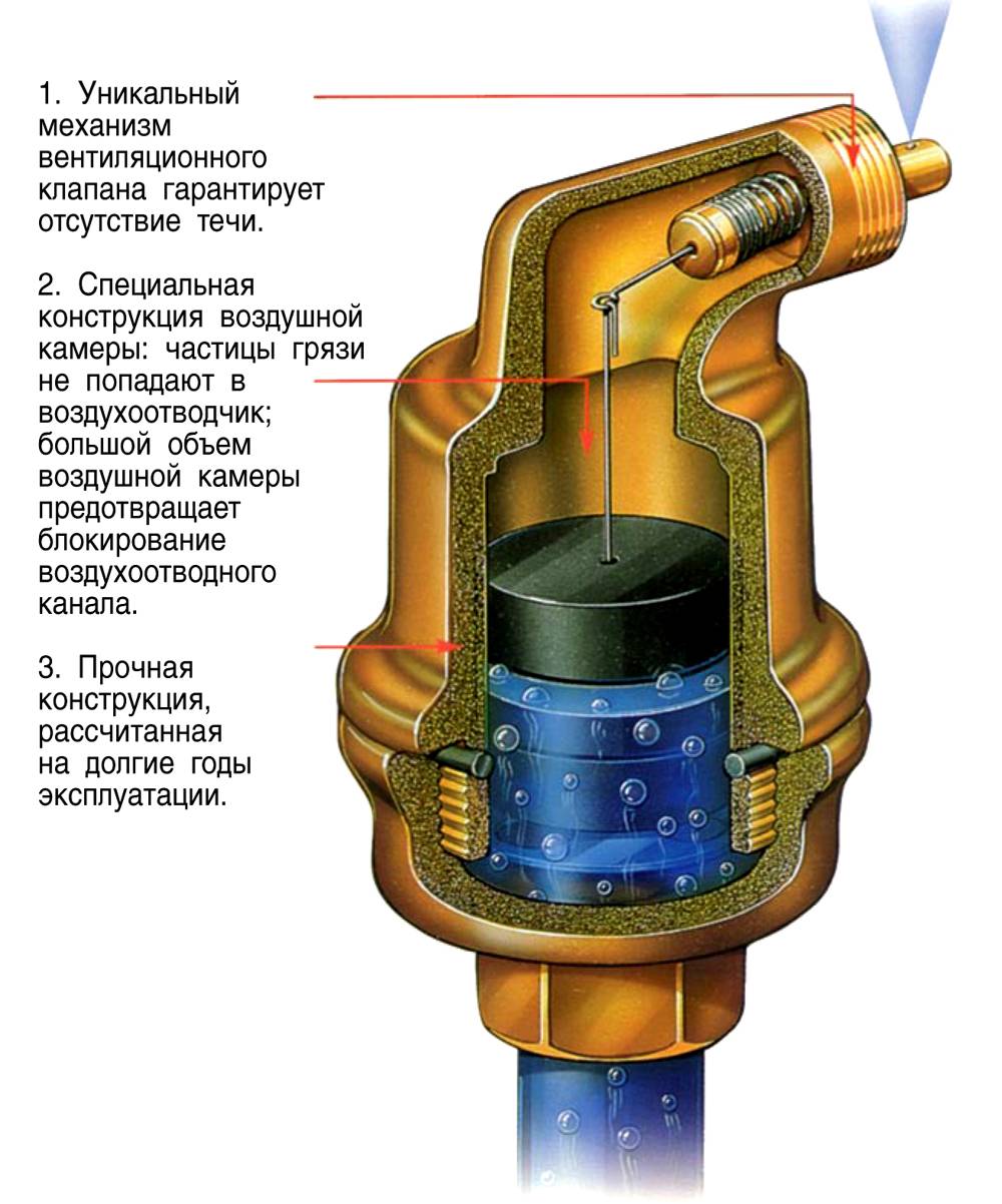 - автоматичното устройство няма метод за ръчно управление. Такива продукти са изработени от месинг и имат цилиндрична форма. Освен това продуктът няма иглена клапа, вместо която се използва пластмасова плувка. Механизмът, когато се образуват въздушни брави, започва да се движи и влияе на отварянето на устройството;