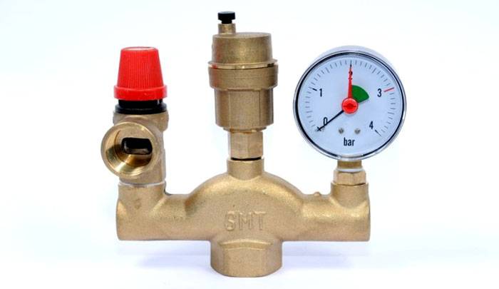 - принципът на действие на крана на Маевски с вграден предпазен механизъм се различава от обичайното изпускане на въздух. Предпазният клапан регулира напора. Ако индикаторът надвишава допустимите параметри, тогава клапанът се задейства и насилствено освобождава охлаждащата течност. Това избягва появата на воден чук в конструкцията. Тази опция е чудесна за металопластика или полипропиленови тръбопроводи.