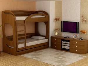 Предоставената информация ви позволява да формулирате точен списък на техническите и естетическите изисквания за съответния комплект мебели. Като пример, помислете за двуетажно легло за деца с работна зона. Първо трябва да решите параметрите на леглото: