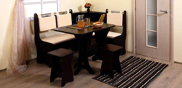 - Пълен комплект. Някои модели допълнително включват 2-3 тахти, които при необходимост могат да действат като допълнително място за гостите. Масата, доставена с ъгъла, може да бъде сгъваема и масивна;