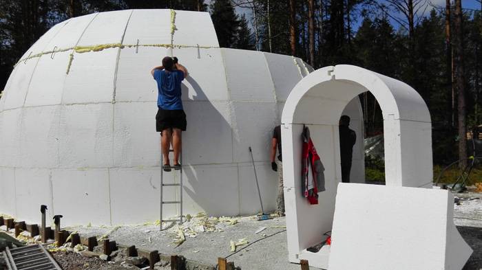 Рамката, както вече споменахме, може да бъде издигната от дърво, но може да се използва и метал, което оскъпява строителството. Също така е възможно да се построят куполни къщи от експандиран полистирол.
