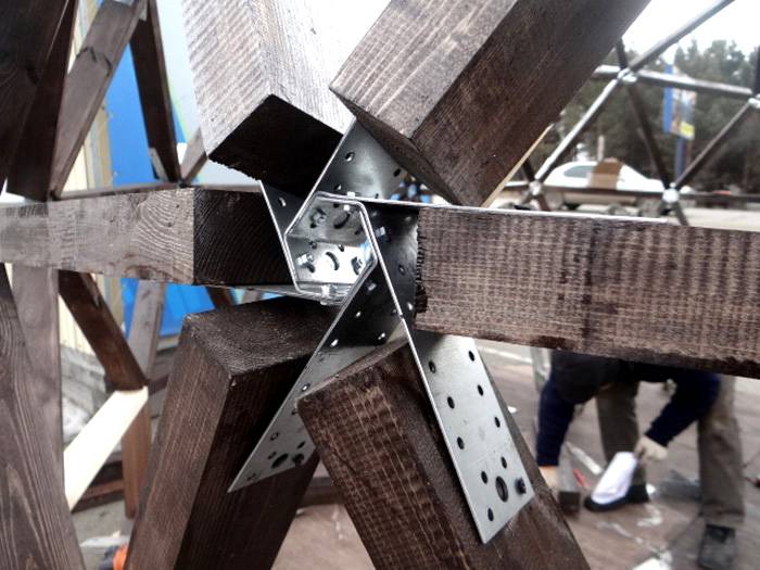 В кръстовището на триъгълните блокове, както и в свода на купола, е по-добре да се използват специални индустриални съединители, наречени съединители за куполни къщи. Те се подлагат на технически контрол за натоварвания и производителност.
