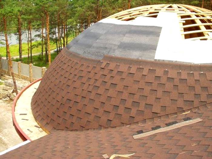Отворите в кръгли къщи трябва да бъдат с подсилени рамки. Това важи особено за вратите. Що се отнася до прозорците, за разлика от вратите, те могат да бъдат с напълно различни форми. Сферичните къщи могат да бъдат покрити с битумни херпес зостер, което е много удобно поради своите гъвкави свойства. В експлоатация битумните херпес зостер са несравними. Неговите хидроизолационни свойства са от най-високо ниво днес. За собственика на къщата остава само да вземе решение за избора на производителя на този материал.