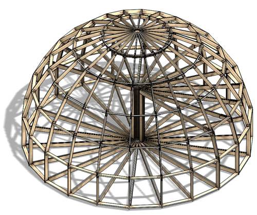 За да построите куполна къща, първо трябва да изградите рамка. Материалът за това изисква достатъчно здрав, въпреки че може да е лек. Дървото е идеално. Той е много удобен при монтаж, тъй като не изисква допълнителни разходи, инсталации и т.н.