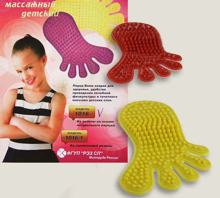 Има възможност за закупуване на детска подложка за масаж на краката дори за двегодишни деца, структурата ще има меки елементи.