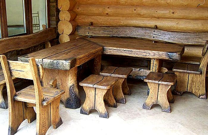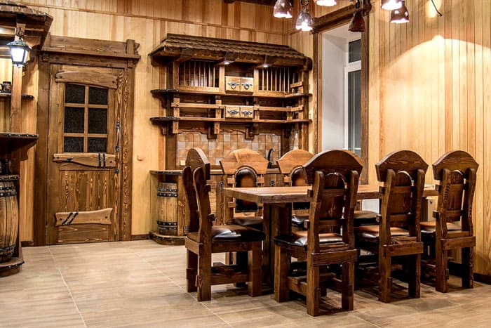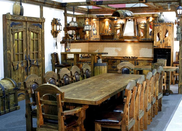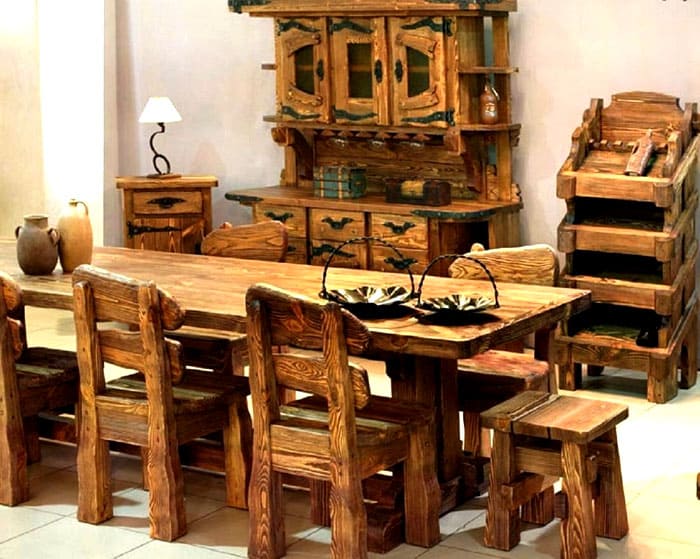Мебелите, които изглеждат като пристигнали в къща или апартамент от древни времена, изглеждат много трайни, оригинални. Производителите предлагат кухненски комплекти, градински конструкции за мебели, обзавеждане за хол и други опции.