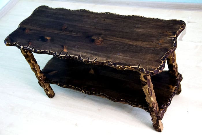 Възрастна повърхност може да бъде създадена чрез термично въздействие върху дървото. Също доста отнемащ време метод.