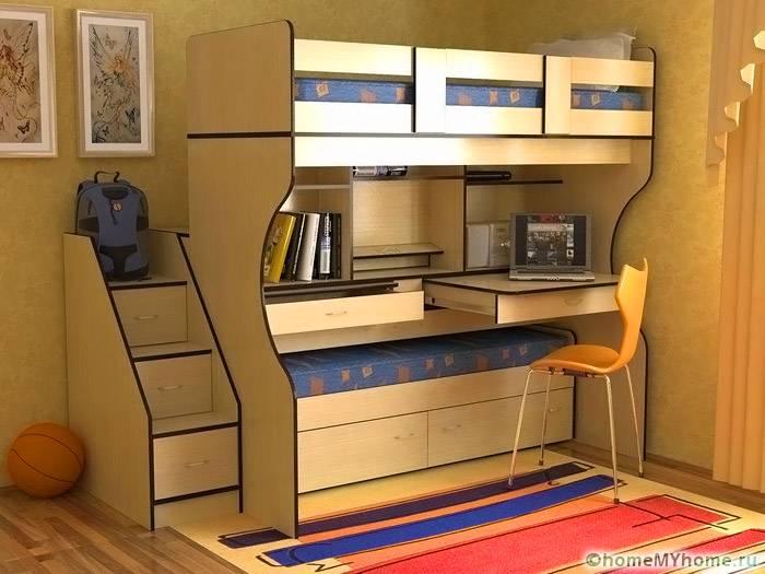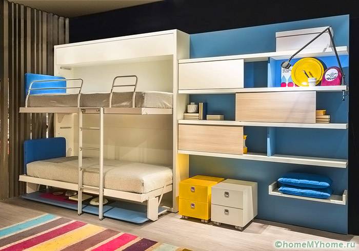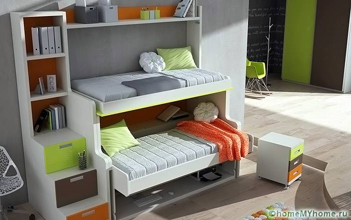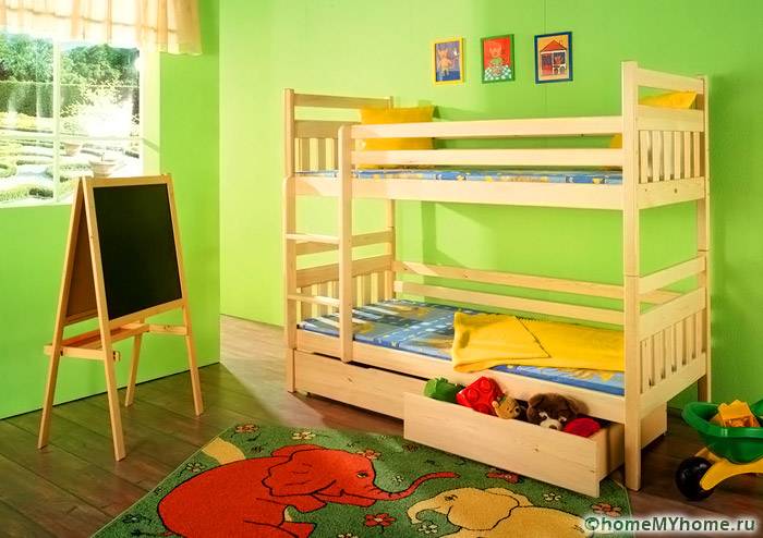 Такива елементи трябва да имат специална здравина.[/ надпис]- двуетажни легла се използват, когато мястото е ограничено;