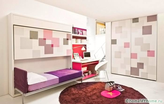 Една малка стая може да бъде обзаведена с компактни мебели, за да побере всичко необходимо. Мебелните магазини предлагат различни модели - трансформатори, сглобени и разгънати като детски дизайнер.