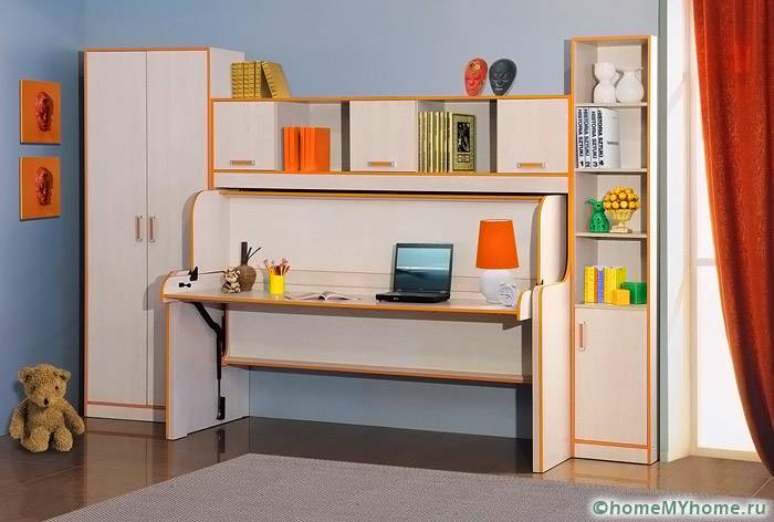 Такива модели помагат за перфектната организация на работното място на ученика.[/ надпис]При проектирането на мебелни комплекти, лостове и панти могат да се използват независими механизми, които се използват като рамка, както и мебели, които се трансформират в преносими елементи.
